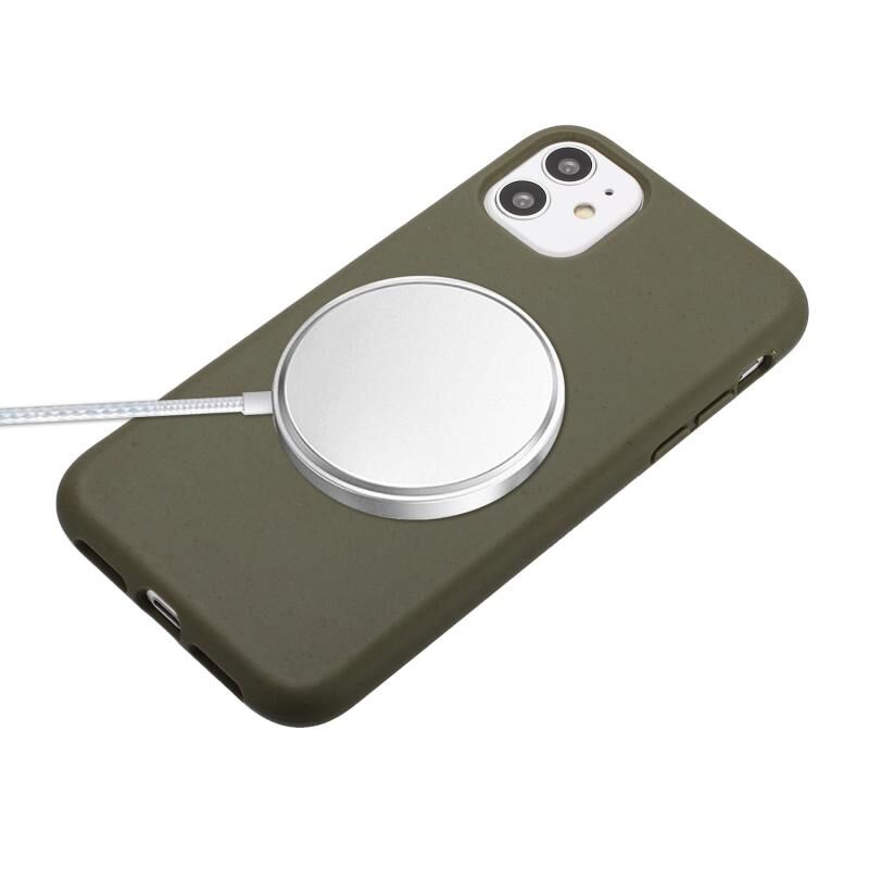 For iPhone 11 Wheat MagSafe Magnetic Straw Material + TPU Phone Case with Lanyard(Army Green)