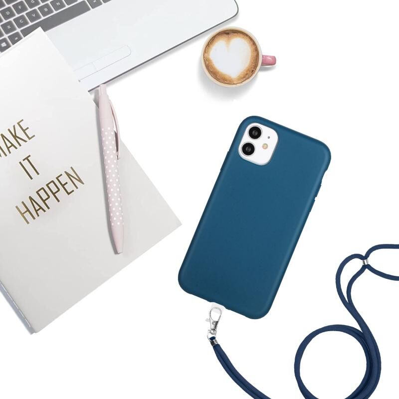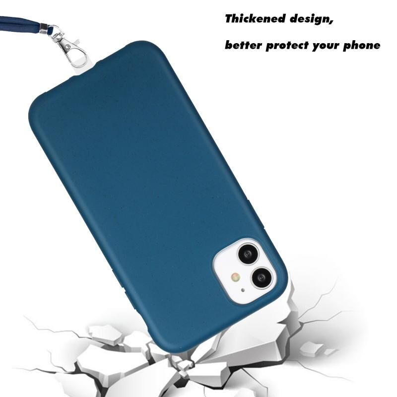 For iPhone 11 Wheat MagSafe Magnetic Straw Material + TPU Phone Case with Lanyard(Blue)