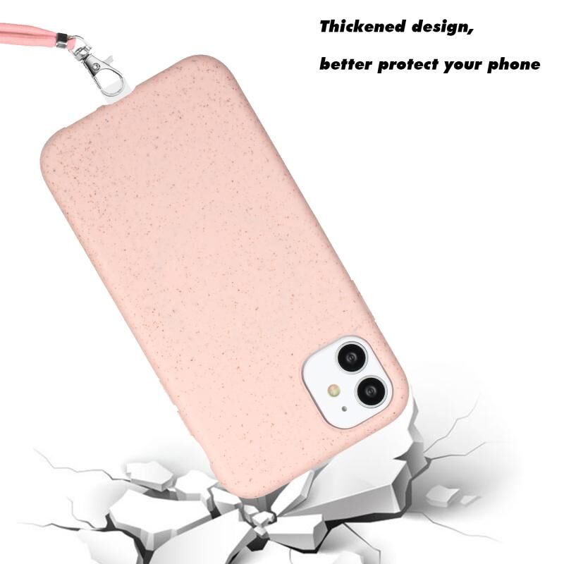 For iPhone 11 Wheat MagSafe Magnetic Straw Material + TPU Phone Case with Lanyard(Pink)