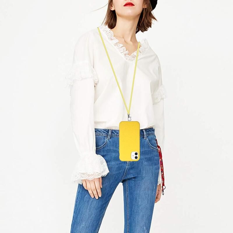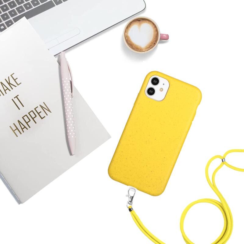 For iPhone 11 Wheat MagSafe Magnetic Straw Material + TPU Phone Case with Lanyard(Yellow)
