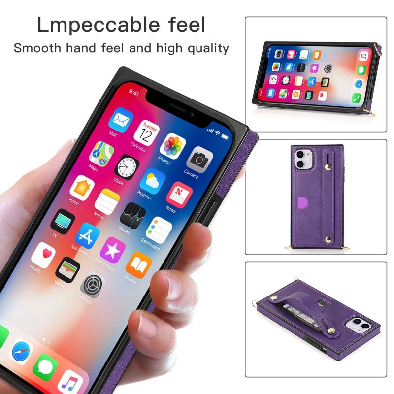 For iPhone 11 Wrist Strap PU+TPU Shockproof Protective Case with Crossbody Lanyard & Holder & Card Slot(Purple)