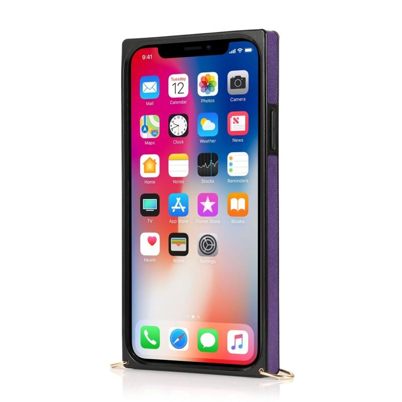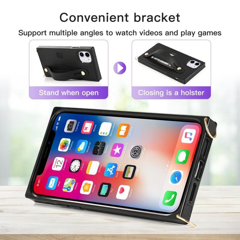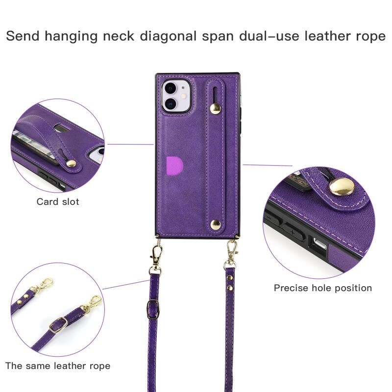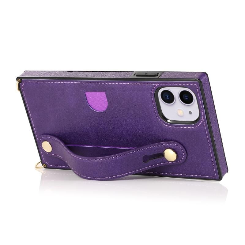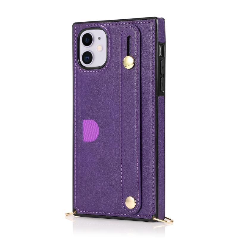 Θήκη προστασίας για iPhone 11 με λουρί καρπού, PU+TPU αντικραδασμική, με λουρί σώματος, βάση στήριξης και θήκη για κάρτες (Μωβ)