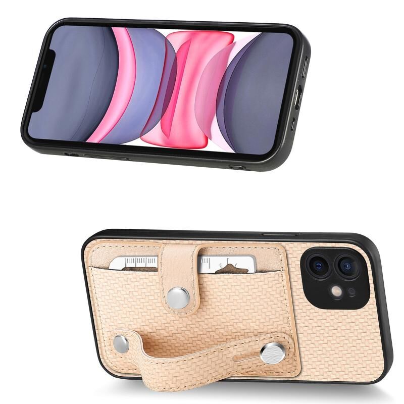 For iPhone 11 Wristband Kickstand Card Wallet Back Cover Phone Case with Tool Knife(Khaki)