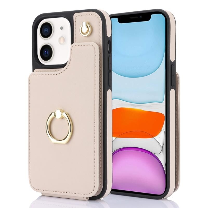 For iPhone 11 YM005 Skin Feel Card Bag Phone Case with Long Lanyard(Apricot)