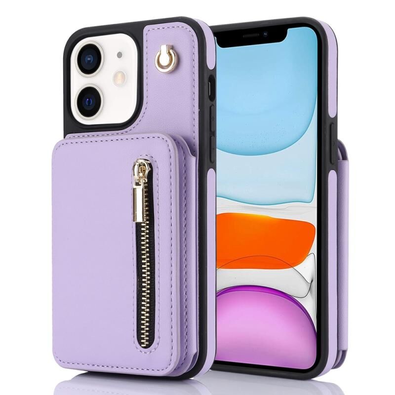 For iPhone 11 YM006 Skin Feel Zipper Card Bag Phone Case with Dual Lanyard(Light Purple)
