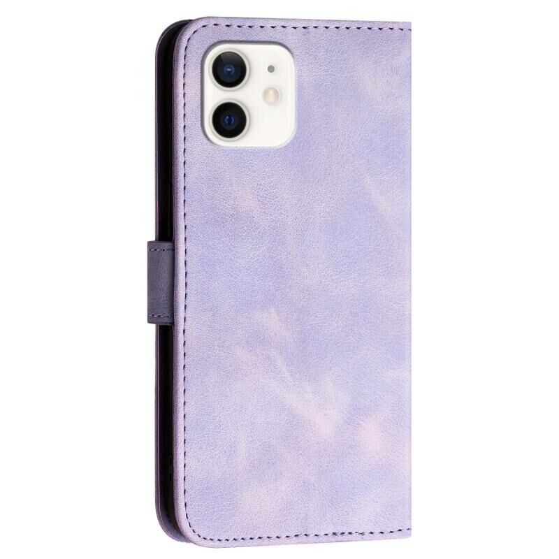For iPhone 11 YX0080 Grid Butterfly Embossed Pattern Flip Leather Phone Case with Lanyard(Light Purple)
