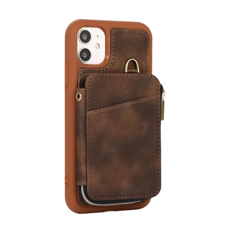 For iPhone 11 Zipper Card Bag Back Cover Phone Case(Brown)