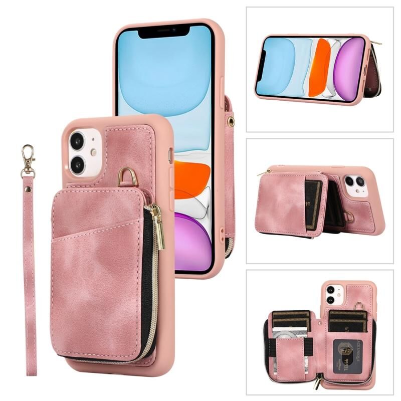 For iPhone 11 Zipper Card Bag Back Cover Phone Case(Pink)