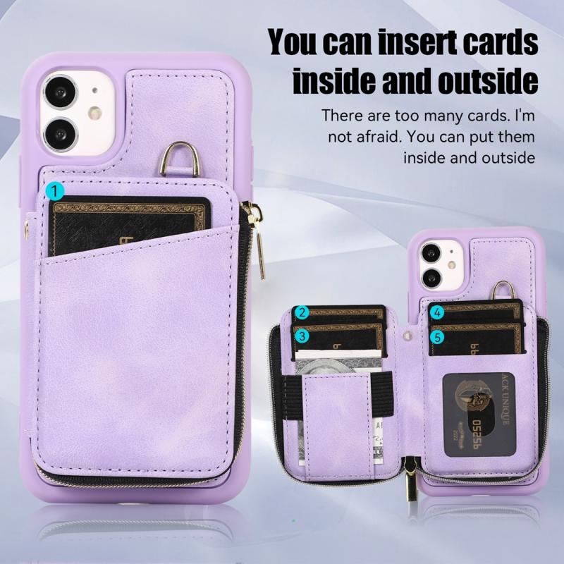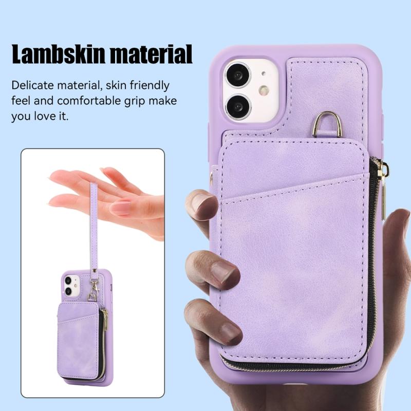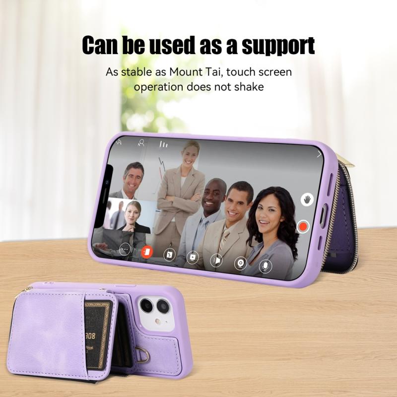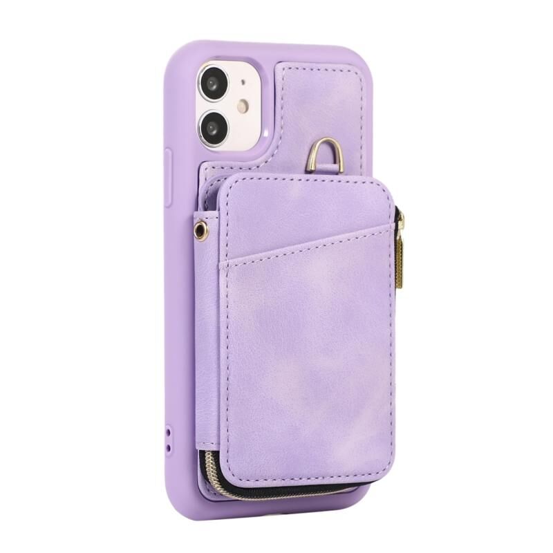 For iPhone 11 Zipper Card Bag Back Cover Phone Case(Purple)
