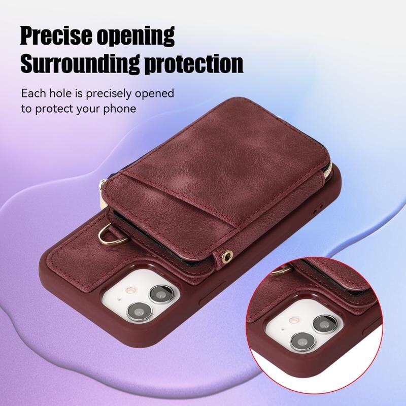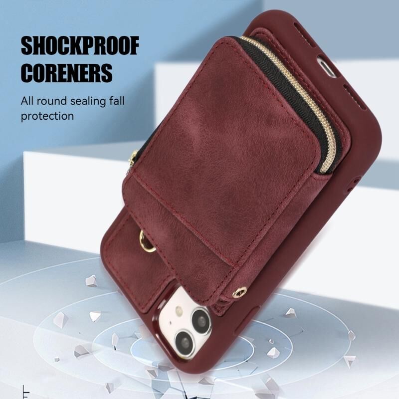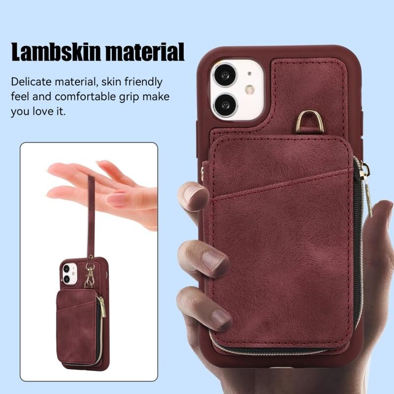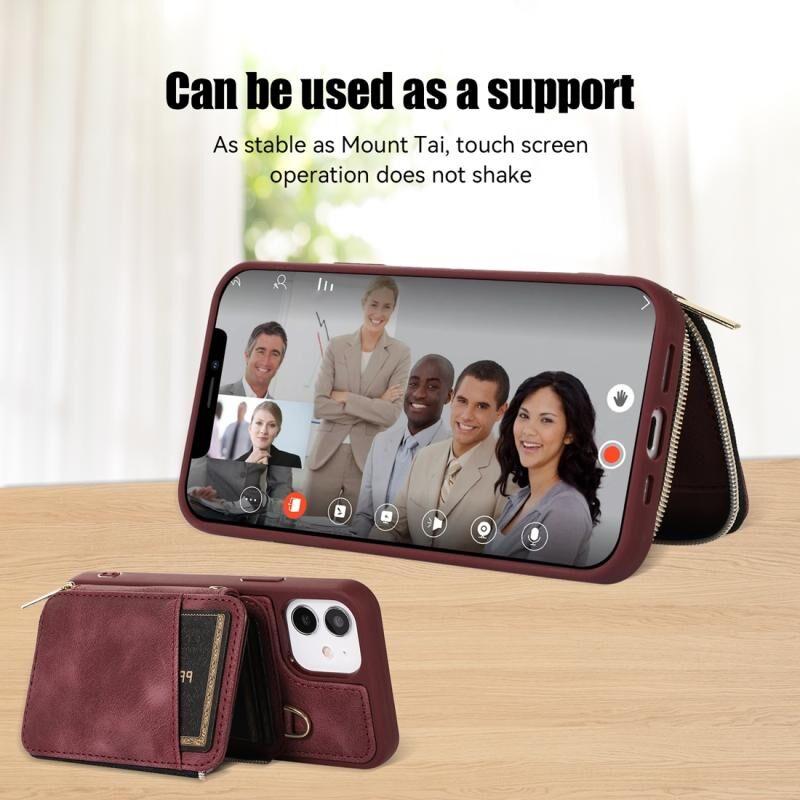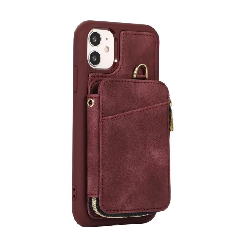 For iPhone 11 Zipper Card Bag Back Cover Phone Case(Wine Red)