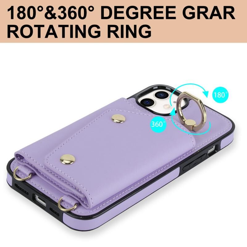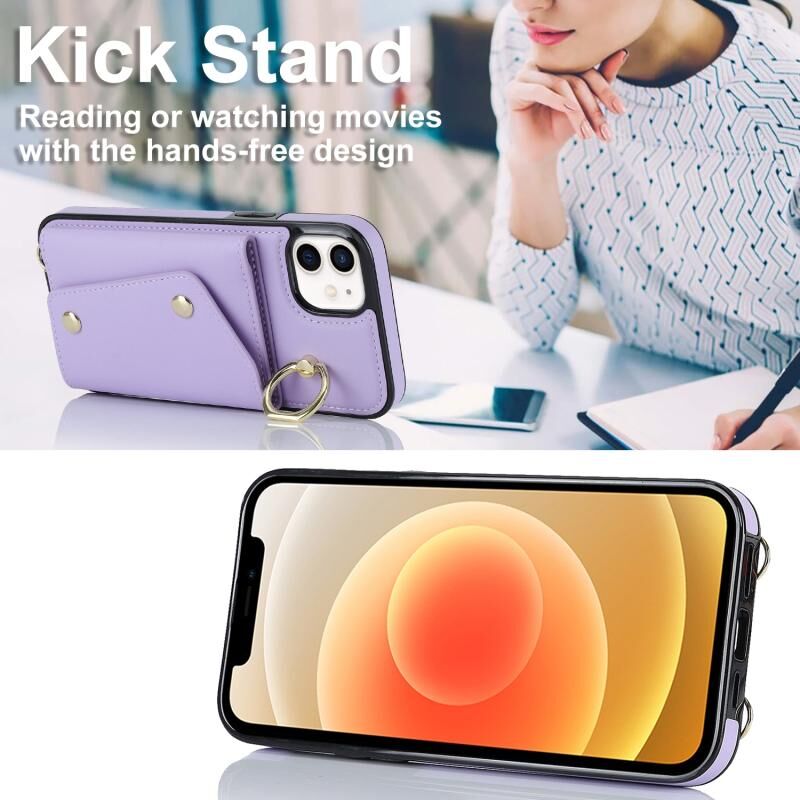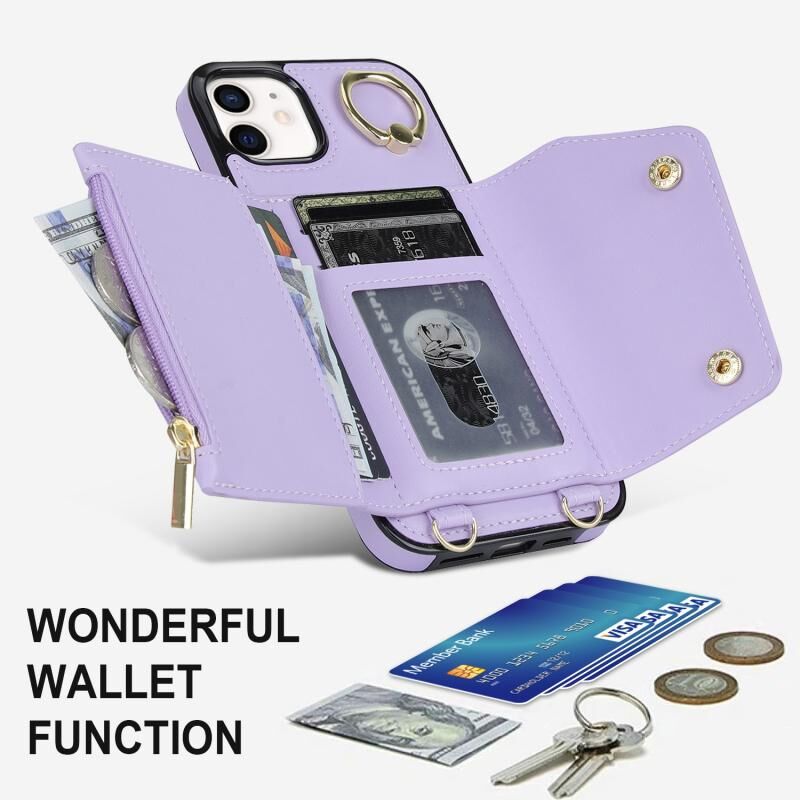 For iPhone 11 Zipper Card Bag Phone Case with Dual Lanyard(Purple)