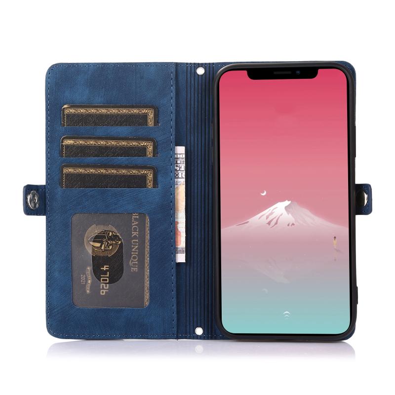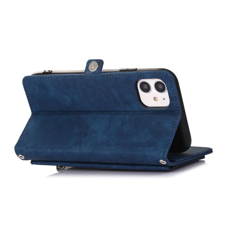 For iPhone 11 Zipper Card Slot Buckle Wallet Leather Phone Case(Blue)