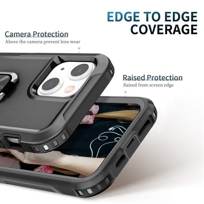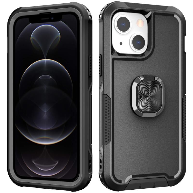 Θήκη κινητού τηλεφώνου 3 σε 1 για iPhone 12 / 12 Pro από PC + TPU με δακτύλιο στήριξης (Μέντας Πράσινο)