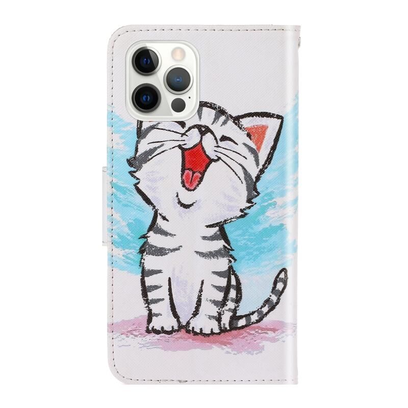 Θήκη για iPhone 12 / 12 Pro 3D με έγχρωμο σχέδιο, οριζόντια αναδιπλούμενη από δερματίνη PU με βάση στήριξης & θήκες για κάρτες & πορτοφόλι (Κόκκινο Στόμα Γάτας)