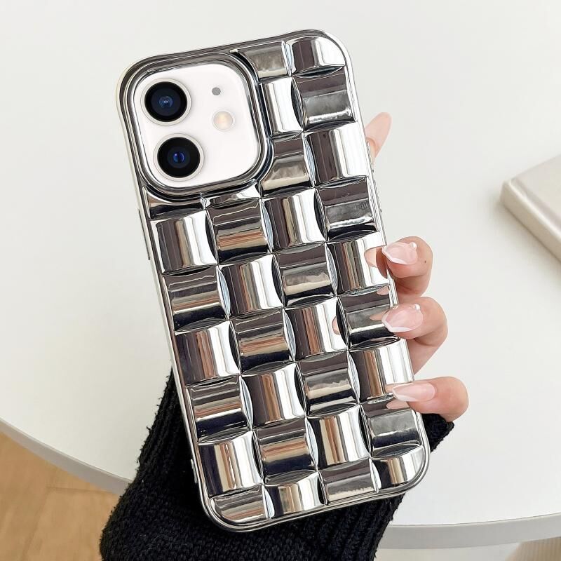 Θήκη τηλεφώνου για iPhone 12 / 12 Pro με 3D υφή πλέγματος κύβου και ηλεκτρολυτική επίστρωση (Ασημί)