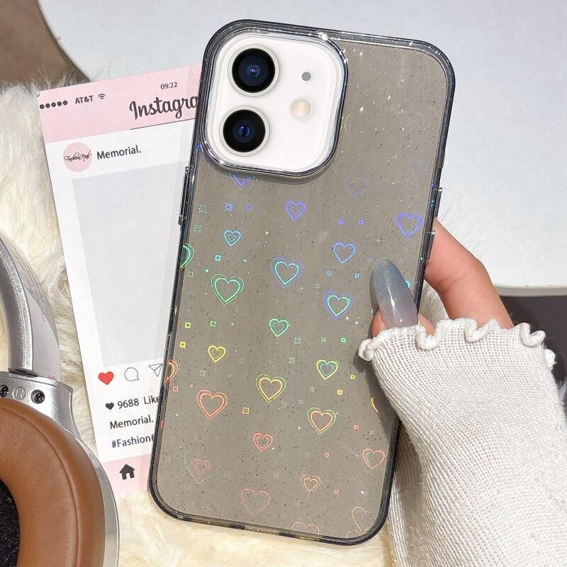 For iPhone 12 / 12 Pro 3D Heart IMD Hybrid TPU Phone Case(Black)