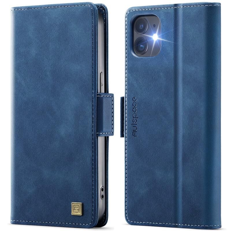 For iPhone 12 / 12 Pro AutSpace A11 Side Buckle MagSafe Magnetic RFID Phone Leather Case(Blue) (AutSpace)