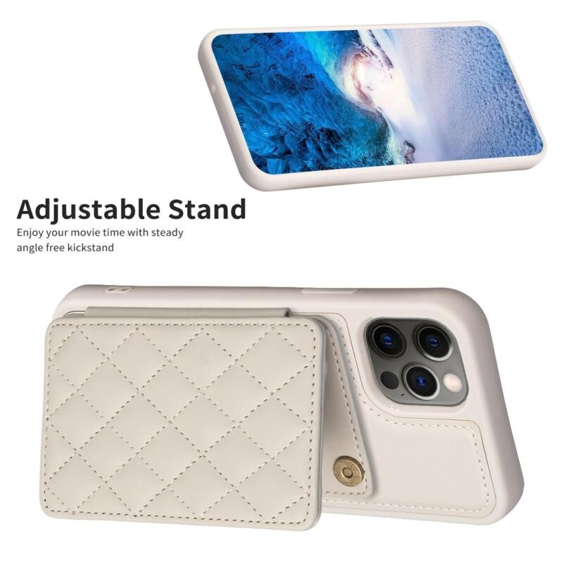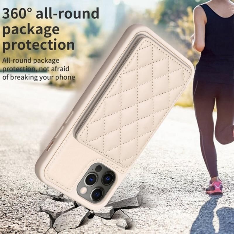 For iPhone 12 / 12 Pro BF25 Square Plaid Card Bag Holder Phone Case(Beige)