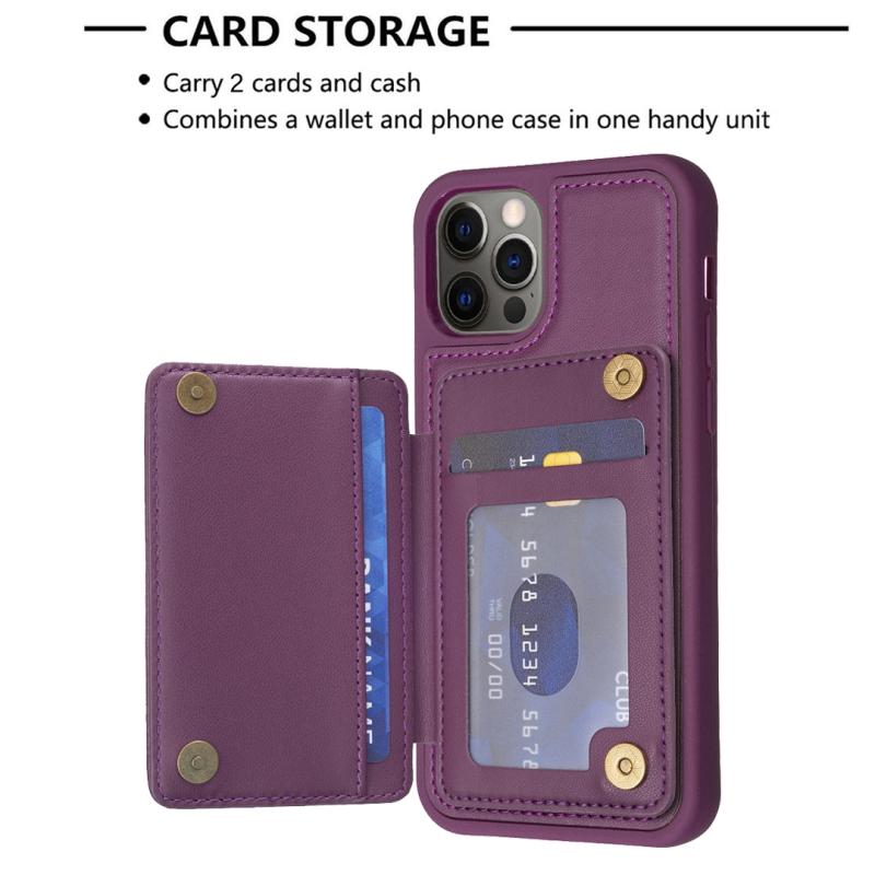 For iPhone 12 / 12 Pro BF25 Square Plaid Card Bag Holder Phone Case(Dark Purple)