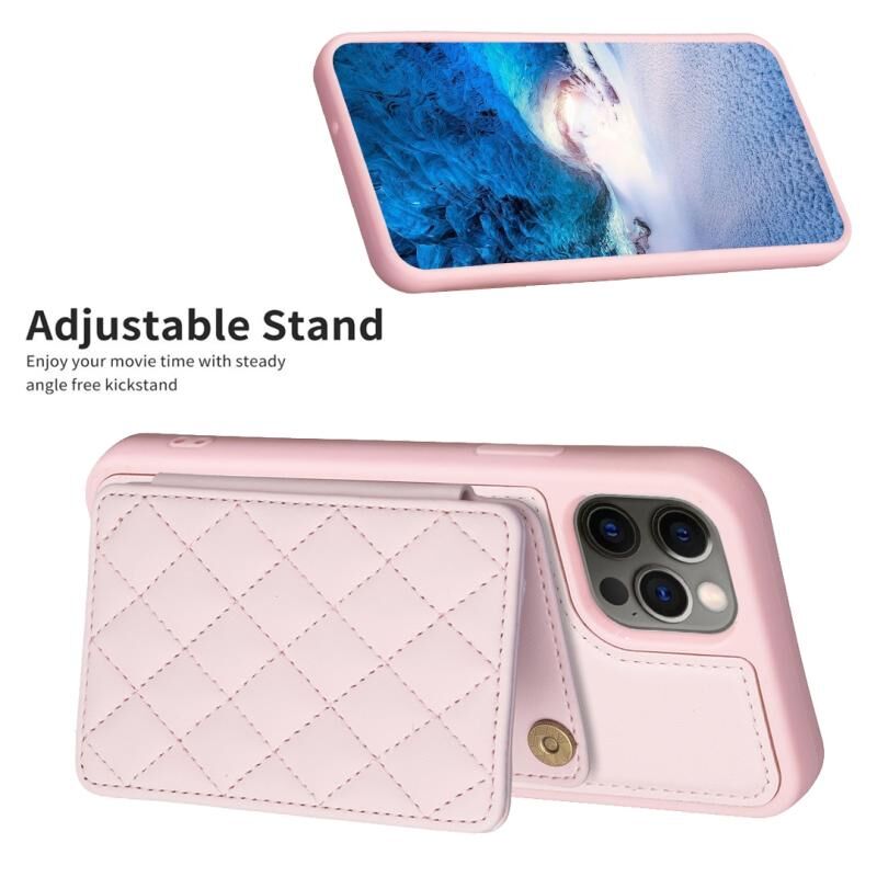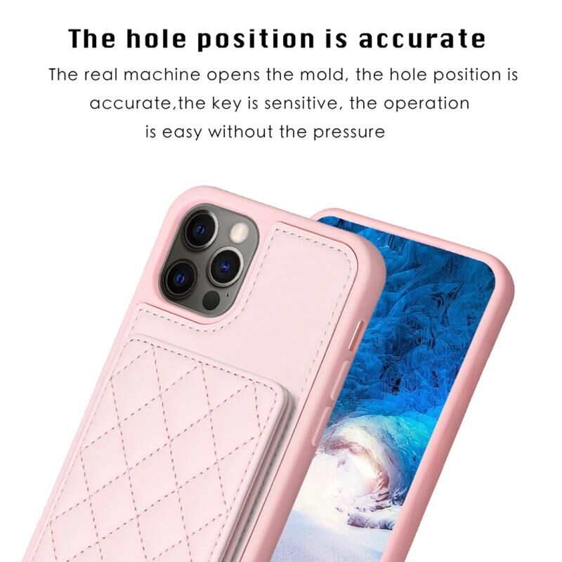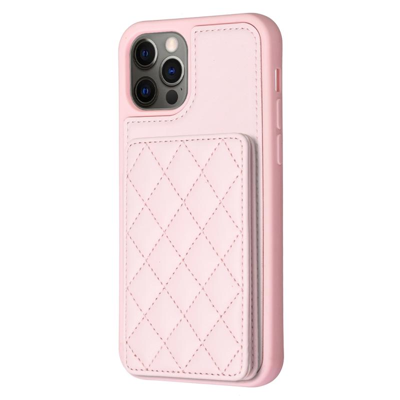 For iPhone 12 / 12 Pro BF25 Square Plaid Card Bag Holder Phone Case(Pink)