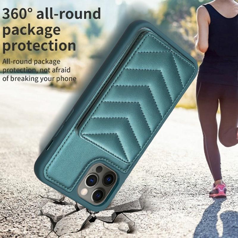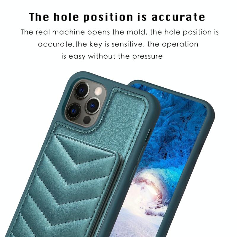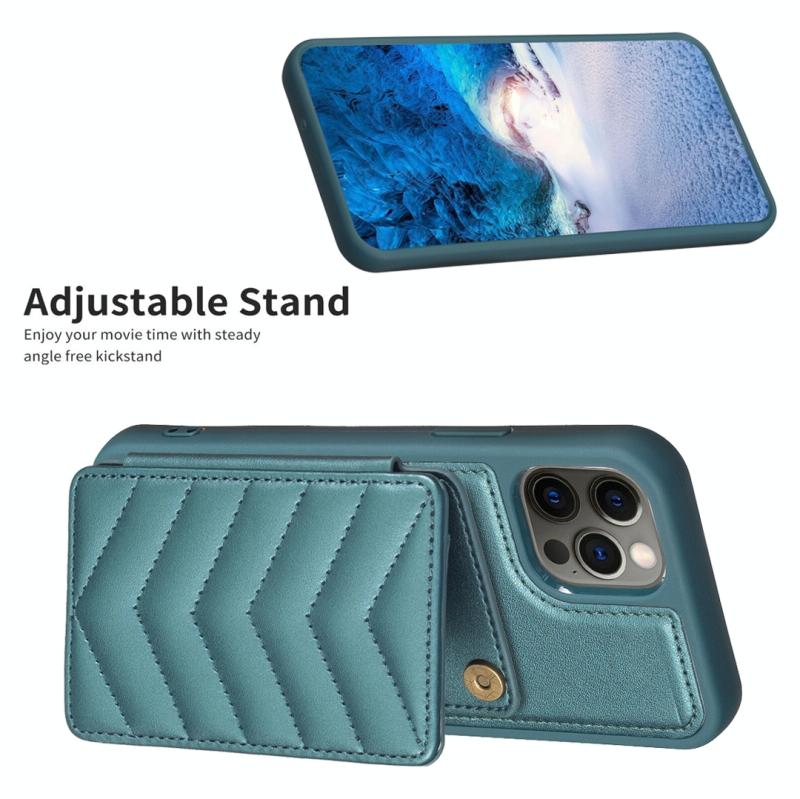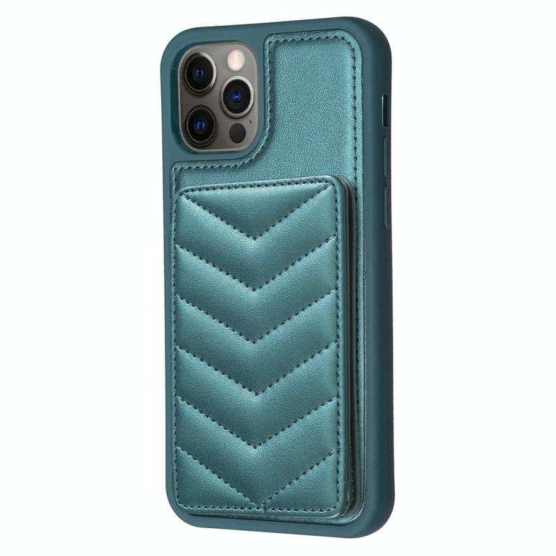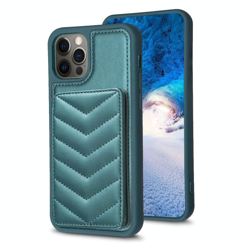 For iPhone 12 / 12 Pro BF26 Wave Pattern Card Bag Holder Phone Case(Green)