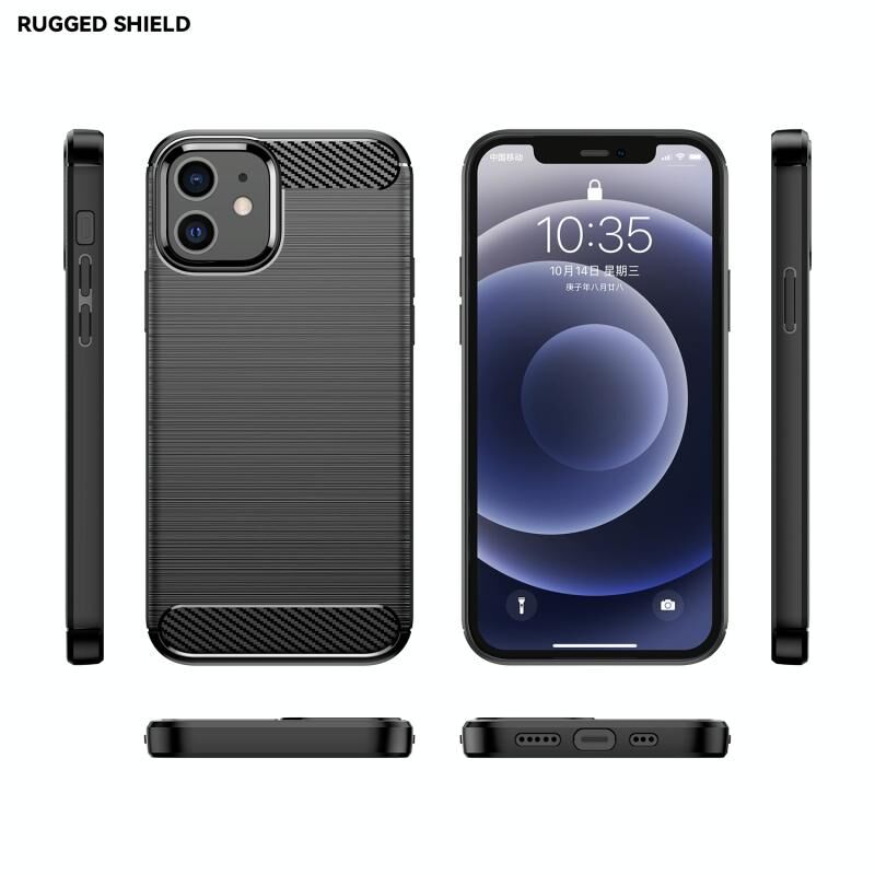 Θήκη για iPhone 12 / 12 Pro από TPU με υφή βουρτσισμένου ανθρακονήματος (Μαύρο)