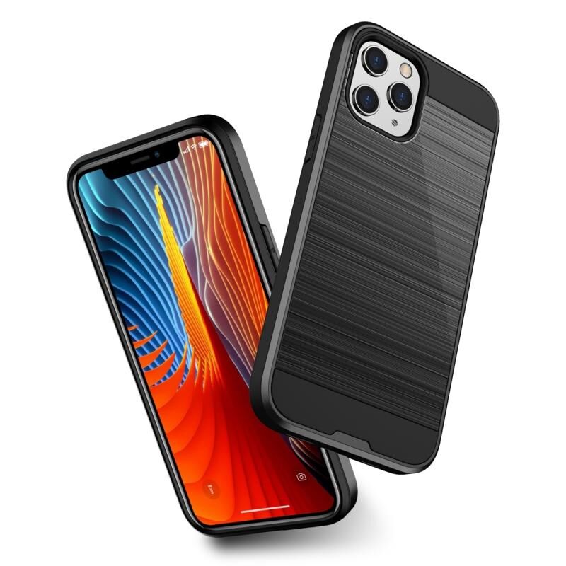 Για iPhone 12 / 12 Pro Θήκη προστασίας από χτυπήματα με βουρτσισμένη υφή (Μαύρο)