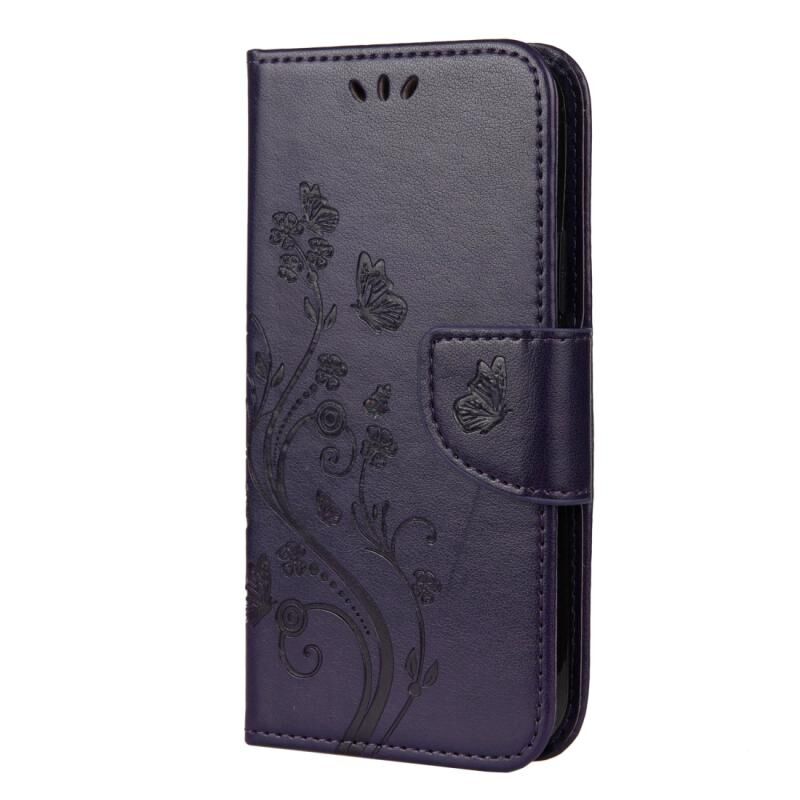 Θήκη δέρματος οριζόντιας αναδίπλωσης για iPhone 12 / 12 Pro με σχέδιο πεταλούδας και λουλουδιών, με βάση στήριξης & υποδοχές καρτών & πορτοφόλι (Μπλε)