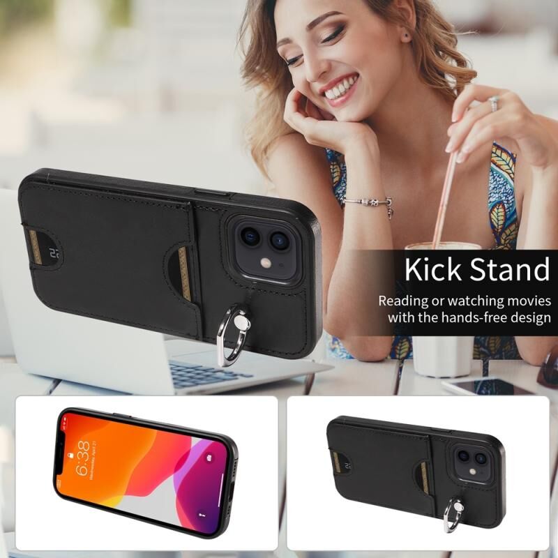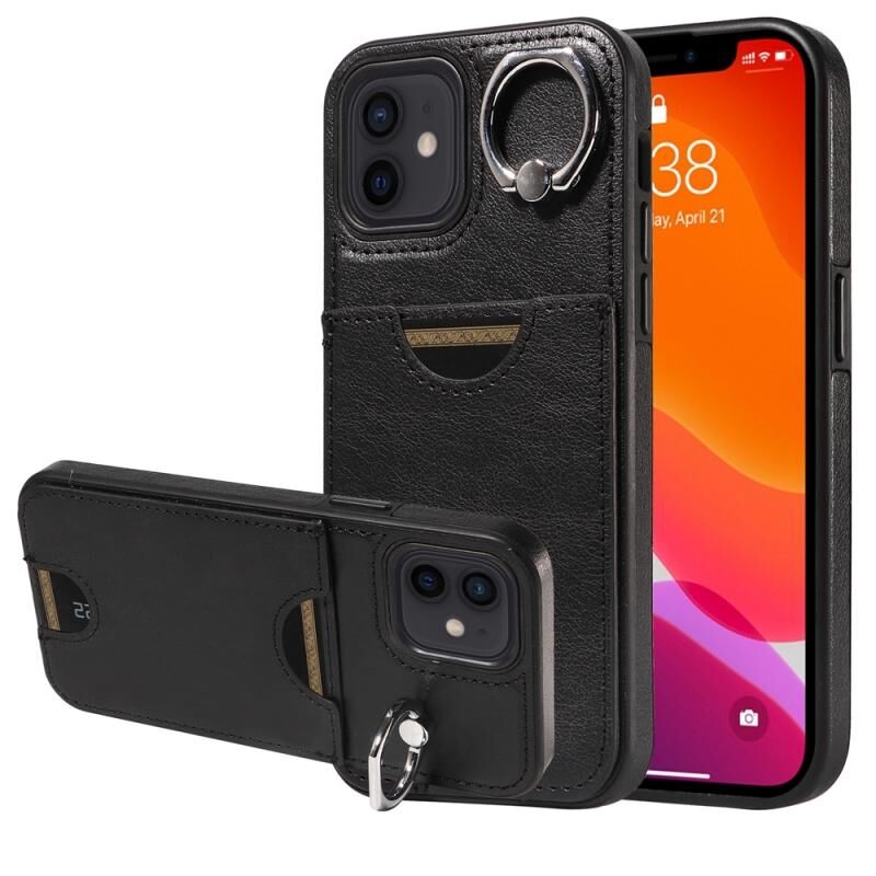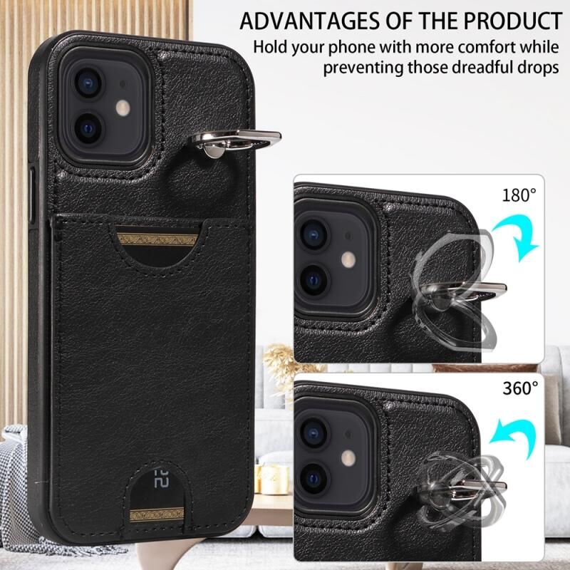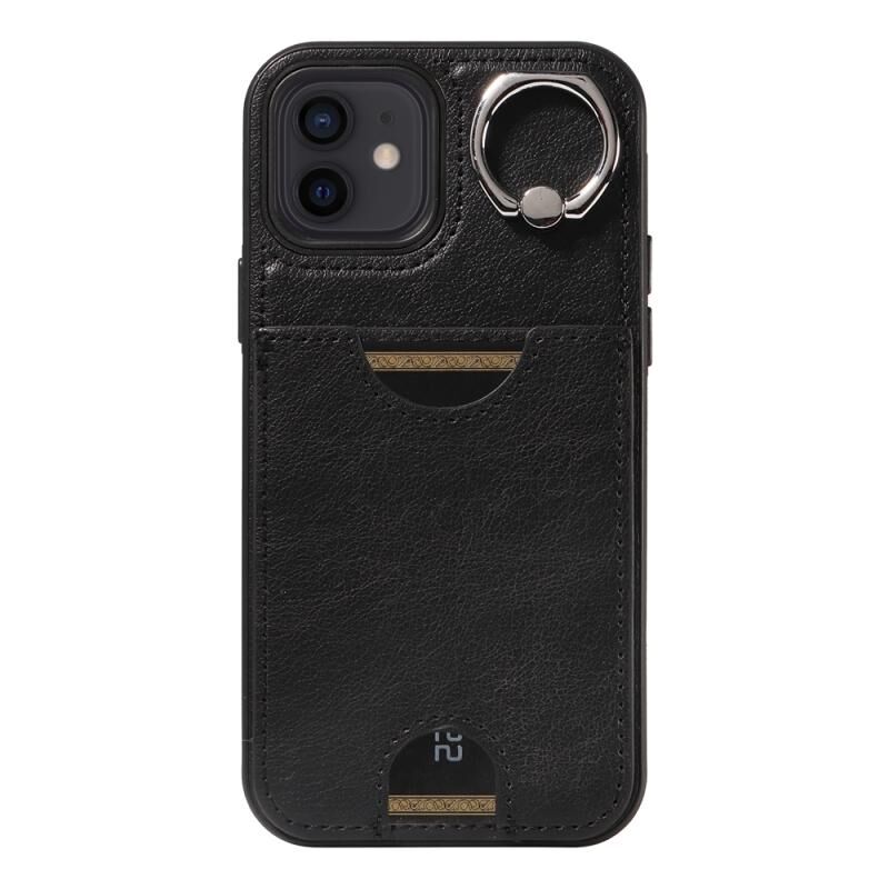 Θήκη τηλεφώνου για iPhone 12 / 12 Pro με υφή δέρματος μοσχαριού, υποδοχή κάρτας και δακτύλιο στήριξης (Μπλε)