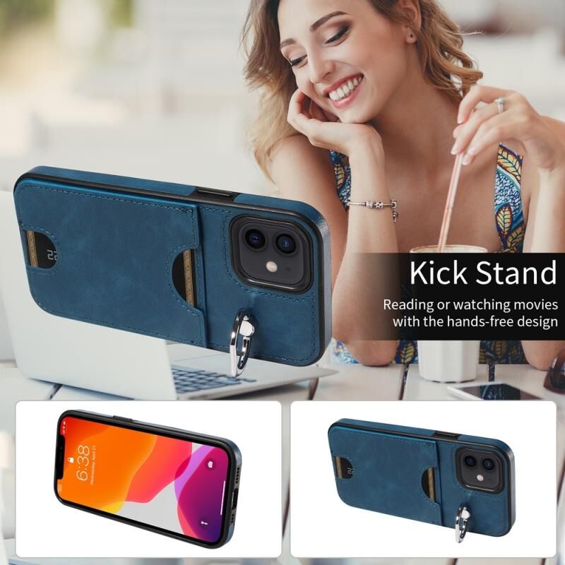 Θήκη τηλεφώνου για iPhone 12 / 12 Pro με υφή δέρματος μοσχαριού, υποδοχή κάρτας και δακτύλιο στήριξης (Μπλε)