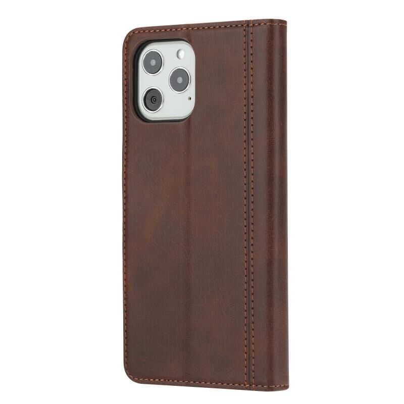 Θήκη δέρματος οριζόντιας αναδίπλωσης με υφή μοσχαριού και διπλό κούμπωμα για iPhone 12 / 12 Pro με κορνίζα φωτογραφιών & βάση στήριξης & θήκες καρτών & πορτοφόλι (Καφέ)