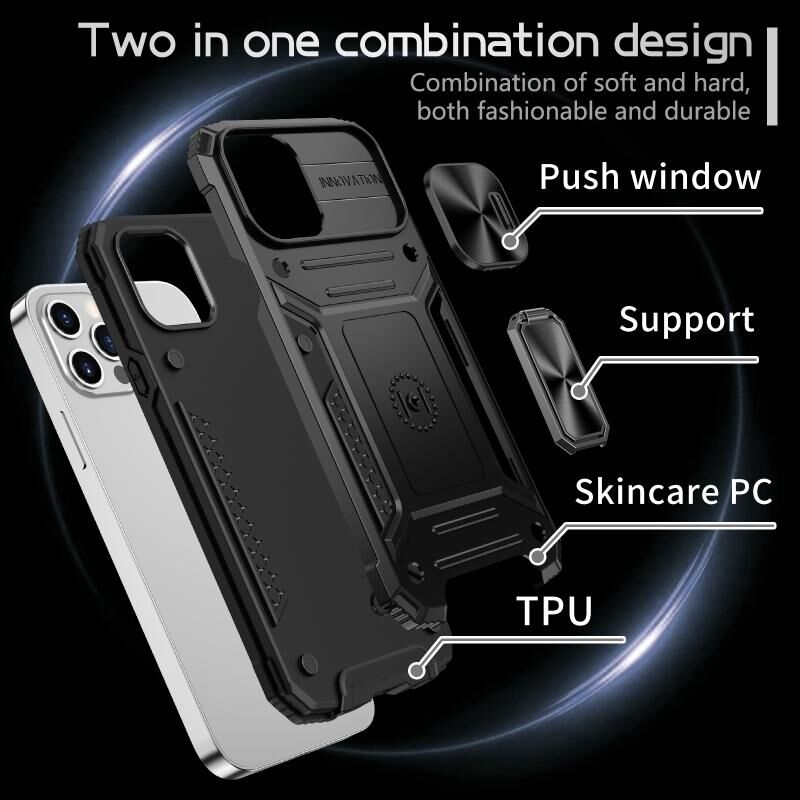 Θήκη τηλεφώνου για iPhone 12 / 12 Pro Camshield Robot TPU Hybrid PC (Μαύρο)
