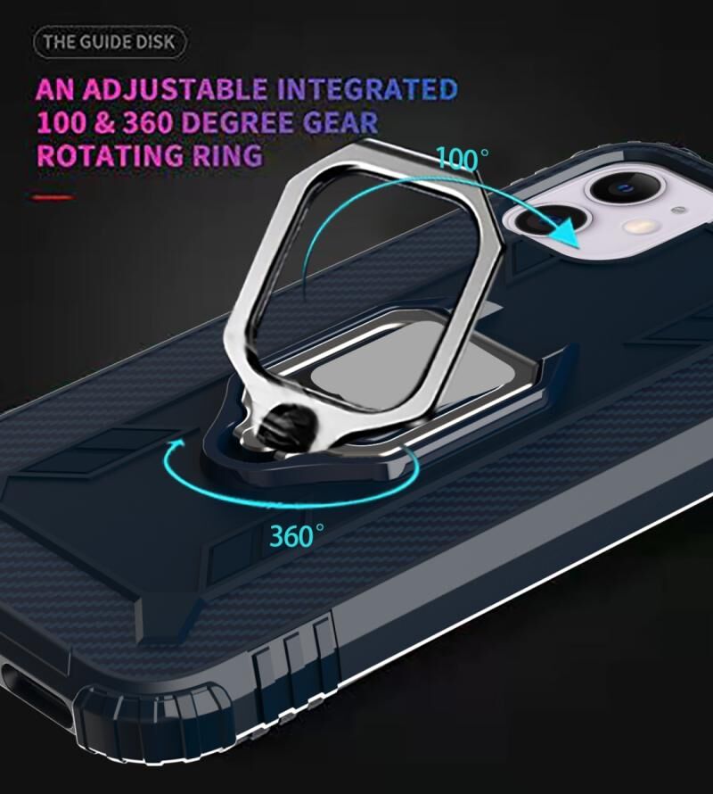 Θήκη προστασίας από ανθρακονήματα για iPhone 12 / 12 Pro με περιστρεφόμενη βάση δακτυλιδιού 360 μοιρών (Πράσινο)