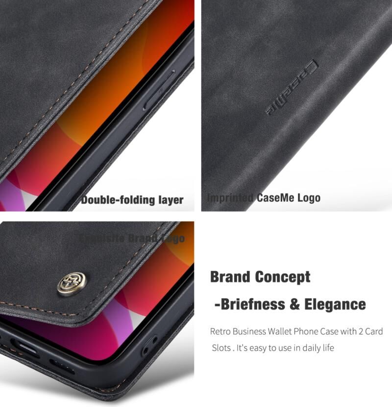 For iPhone 12 / 12 Pro CaseMe-013 Multifunctional Retro Frosted Horizontal Flip Leather Case with Card Slot & Holder & Wallet(Black) (CaseMe)
