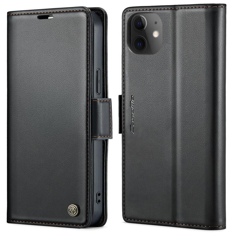 For iPhone 12 / 12 Pro CaseMe 023 Butterfly Buckle Litchi Texture RFID Anti-theft Leather Phone Case(Black) (CaseMe)