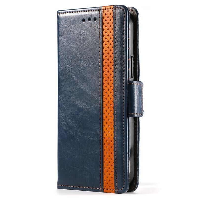 For iPhone 12 / 12 Pro CaseNeo Business Splicing Dual Magnetic Buckle Horizontal Flip PU Leather Case with Holder & Card Slots & Wallet(Blue)