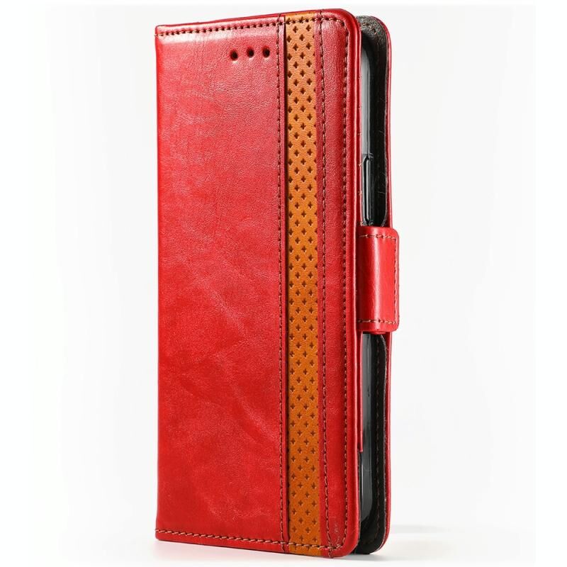 For iPhone 12 / 12 Pro CaseNeo Business Splicing Dual Magnetic Buckle Horizontal Flip PU Leather Case with Holder & Card Slots & Wallet(Red)