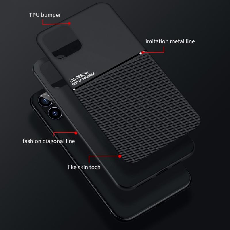 For iPhone 12 / 12 Pro Classic Tilt Strip Grain Magnetic Shockproof PC + TPU Case(Blue)