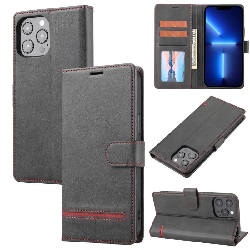 Θήκη τηλεφώνου τύπου πορτοφολιού, κλασική, δερμάτινη, για iPhone 12 / 12 Pro (Μαύρο)