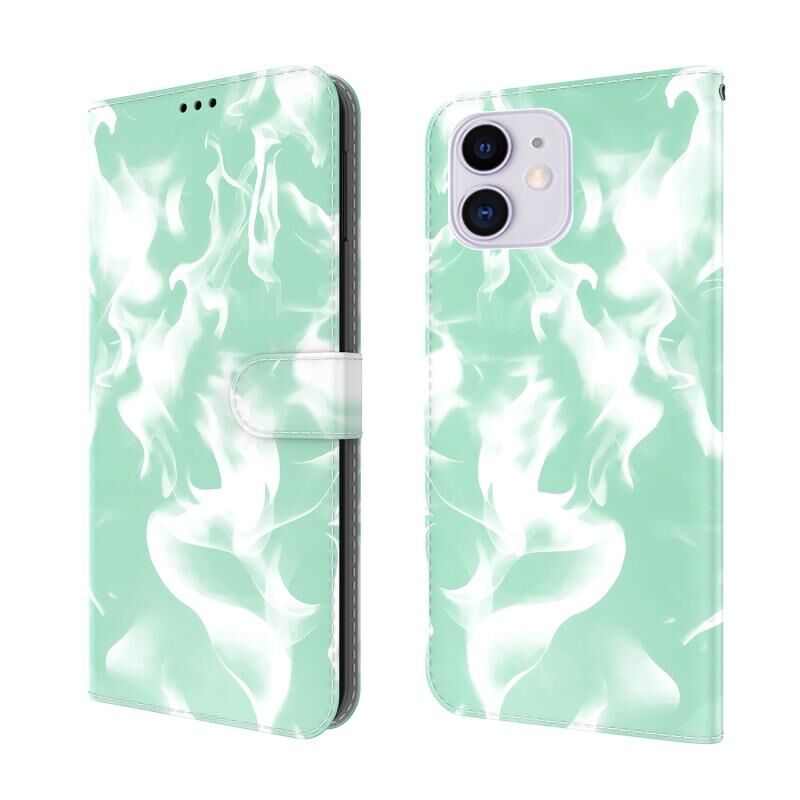 Θήκη δέρματος οριζόντιας αναδίπλωσης για iPhone 12 / 12 Pro με σχέδιο Cloud Fog, βάση στήριξης, θήκη για κάρτες & πορτοφόλι (Μέντα Πράσινο)