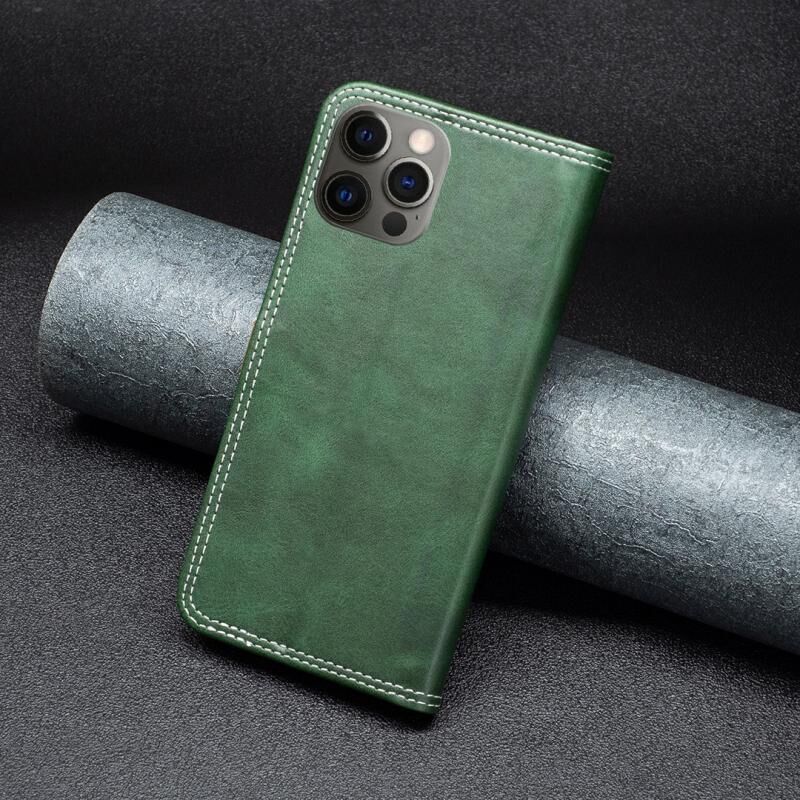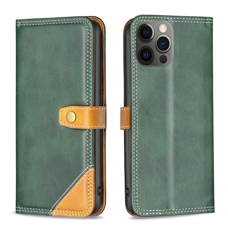Θήκη δέρματος διπλής ραφής, χρωματικής αντιστοίχισης για iPhone 12 / 12 Pro (Μαύρο)