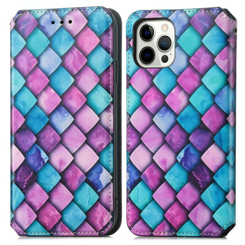 For iPhone 12 / 12 Pro Colored Drawing Magnetic Horizontal Flip PU Leather Case with Holder & Card Slots & Wallet(Purple Scales)
