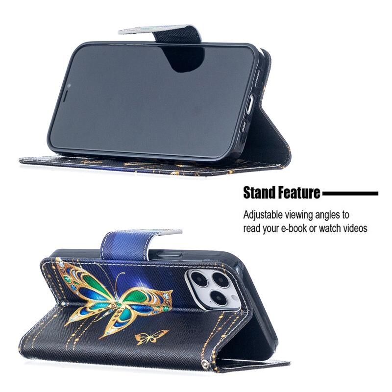 Θήκη δέρματος οριζόντιας αναδίπλωσης με σχέδιο ζωγραφικής και χρώματα για iPhone 12 / 12 Pro με βάση για κάρτες & θήκη πορτοφολιού (Μεγάλη Πεταλούδα)