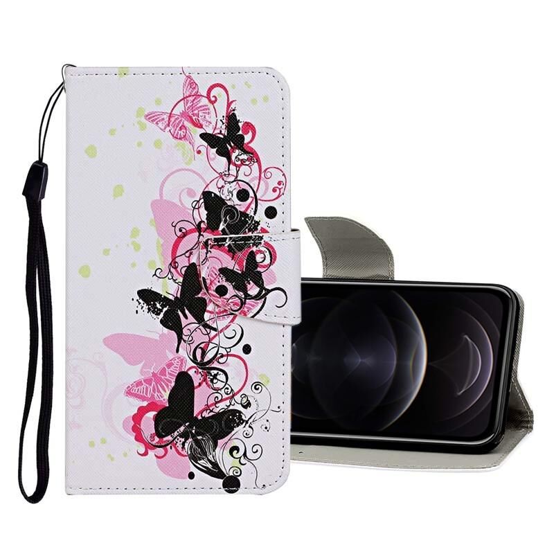Θήκη δέρματος οριζόντιας αναδίπλωσης με σχέδιο ζωγραφικής σε χρώμα για iPhone 12 / 12 Pro με βάση & θήκες καρτών & πορτοφόλι (Τέσσερα Πεταλούδες)