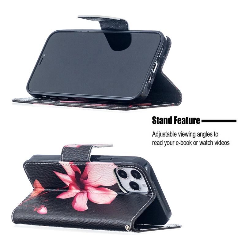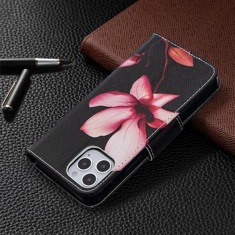 Θήκη δέρματος οριζόντιας αναδίπλωσης με σχέδιο ζωγραφικής σε χρώμα για iPhone 12 / 12 Pro με βάση & υποδοχές καρτών & πορτοφόλι (Λωτός)