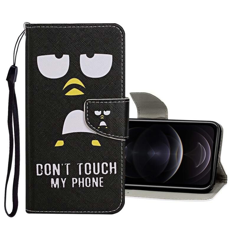 Θήκη δέρματος οριζόντιας αναδίπλωσης με σχέδιο πολύχρωμης ζωγραφικής για iPhone 12 / 12 Pro με βάση & υποδοχές καρτών & πορτοφόλι (Πιγκουίνος)
