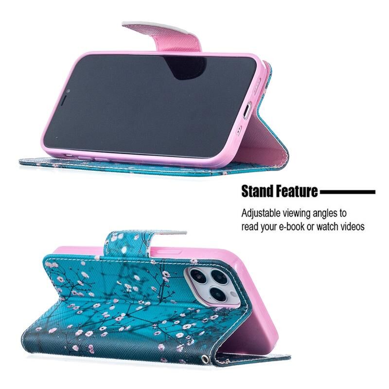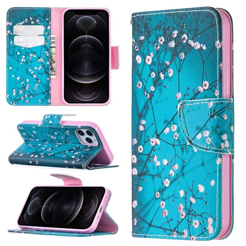 Θήκη δέρματος οριζόντιας αναδίπλωσης με σχέδιο ζωγραφικής σε χρώμα για iPhone 12 / 12 Pro με βάση στήριξης & υποδοχές καρτών & πορτοφόλι (Λουλούδι Δαμασκηνιάς)