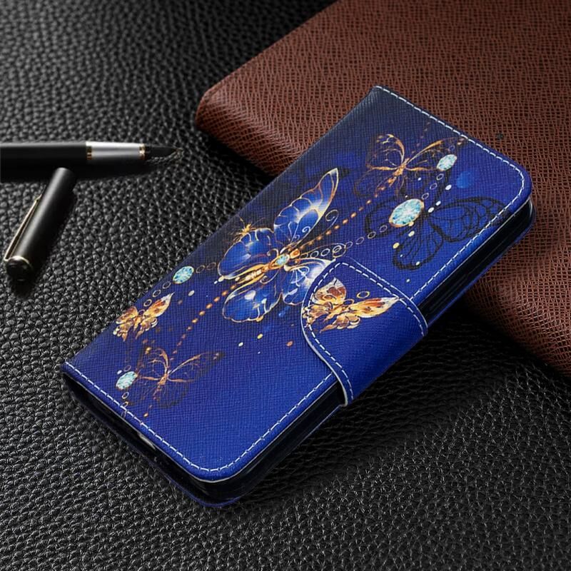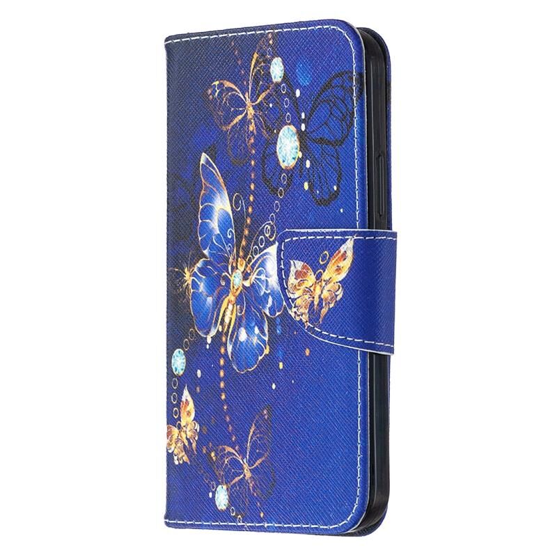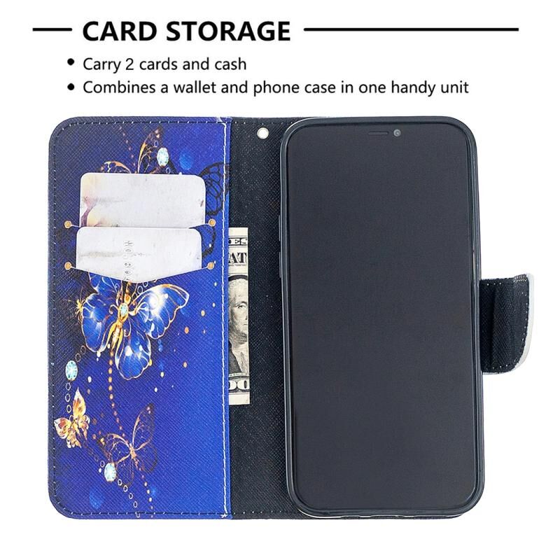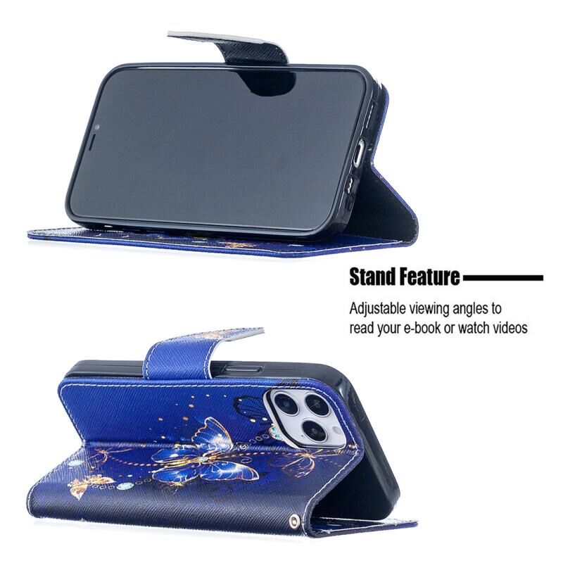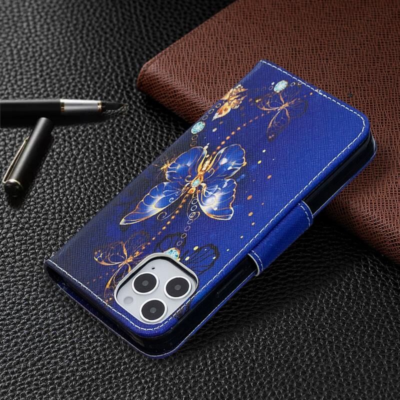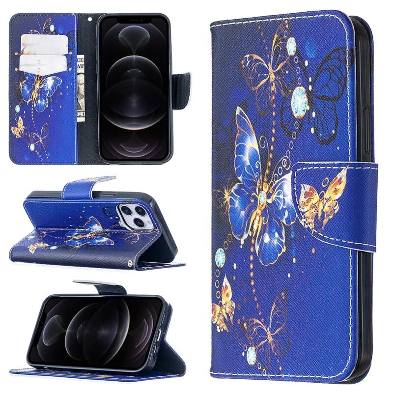 Θήκη δέρματος οριζόντιας αναδίπλωσης με σχέδιο πολύχρωμης ζωγραφικής για iPhone 12 / 12 Pro με βάση & θήκες καρτών & πορτοφόλι (Μωβ Πεταλούδα)