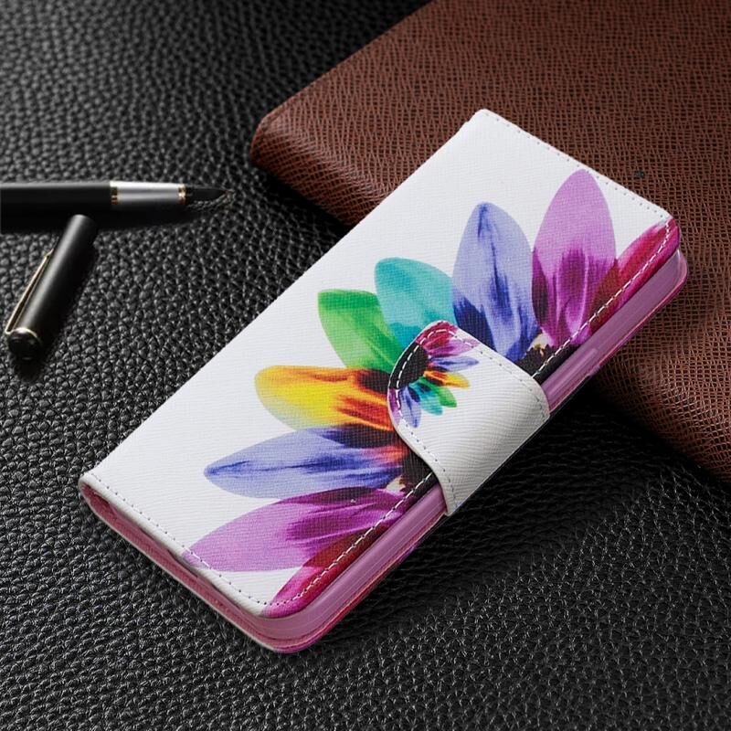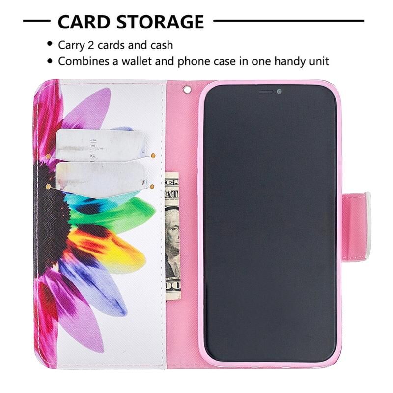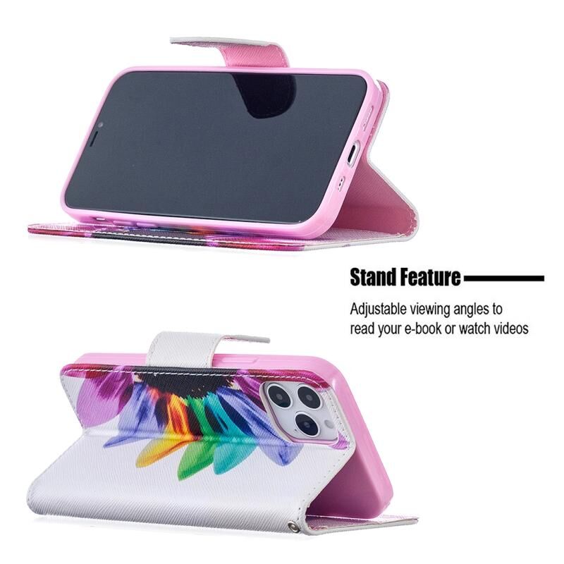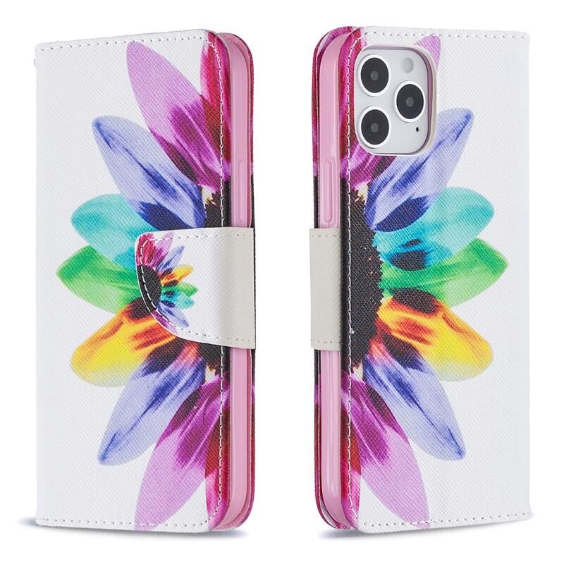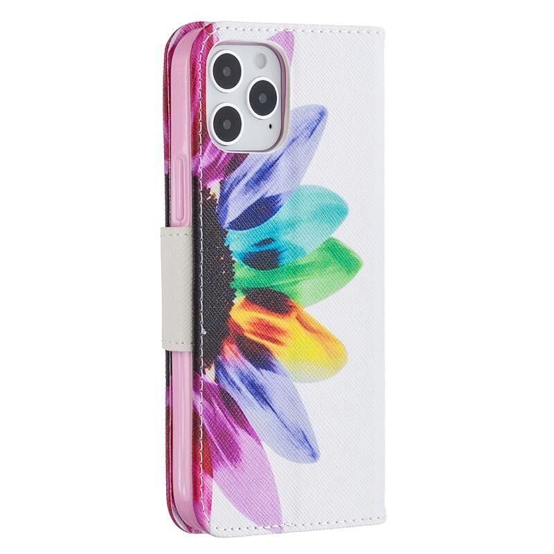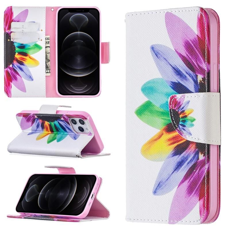 Θήκη δέρματος οριζόντιας αναδίπλωσης με σχέδιο πολύχρωμης ζωγραφικής για iPhone 12 / 12 Pro με βάση & θήκες καρτών & πορτοφόλι (Ηλίανθος)