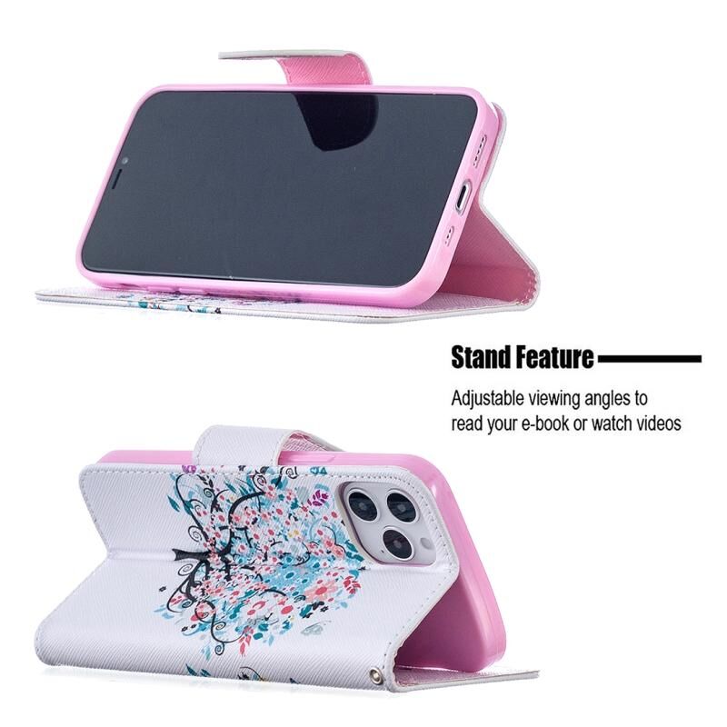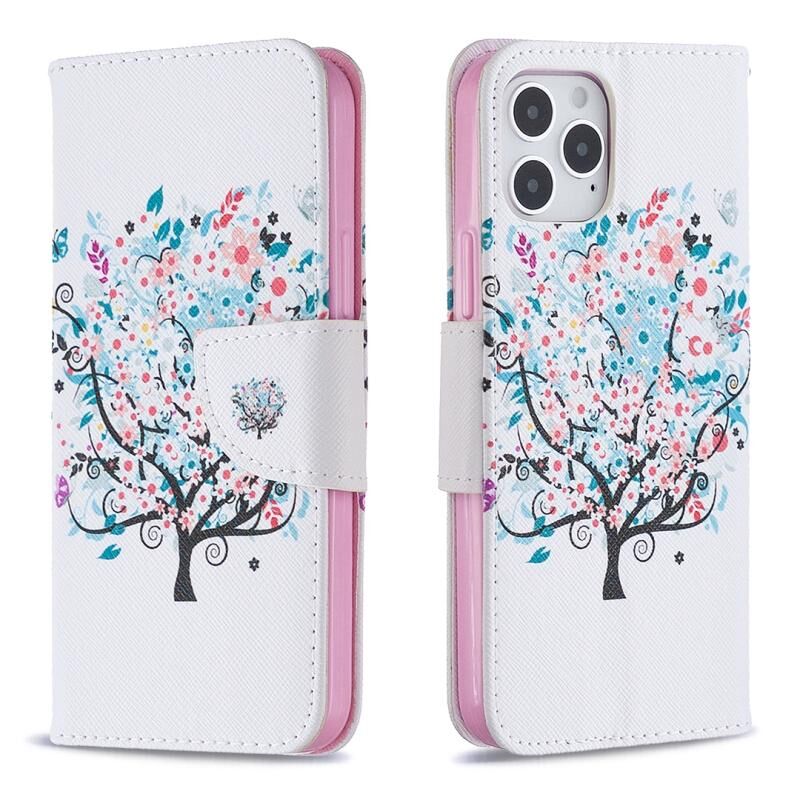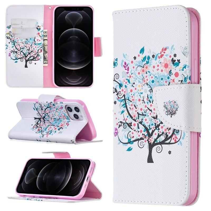 Θήκη δέρματος οριζόντιας αναδίπλωσης με σχέδιο ζωγραφικής και χρώματα για iPhone 12 / 12 Pro με βάση για κάρτες & θήκη πορτοφολιού (Δέντρο)